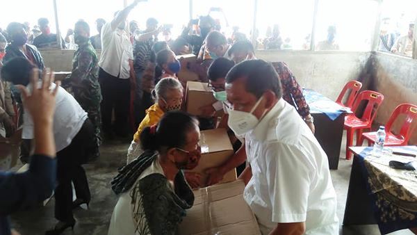 Samosir – Kompas Nasional | Gugus Tugas Percepatan Penanganan Covid-19 Provinsi Sumatera Utara bersama dengan Pemkab Samosir menyalurkan Bantuan Jaring Pengaman Sosial (JPS) berupa Paket Bahan Pangan di Kecamatan Onan Runggu, Rabu (8/7).