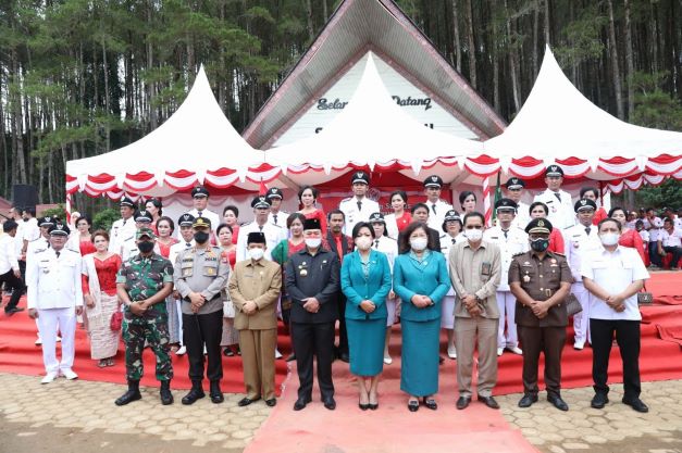 Kompasnasional. Taput | Sebanyak 199 Kepala Desa (Kades) terpilih di Kabupaten Tapanuli Utara resmi dilantik oleh Bupati Tapanuli Utara Drs. Nikson Nababan M.Si di Pelataran Salib Kasih Kecamatan Siatas Barita, Rabu (22/12/2021). Turut hadir Ketua TP PKK Kabupaten Tapanuli Utara Satika Simamora SE, MM, Sekretaris Daerah Drs. Indra S.H Simaremare M.Si, Kapolres Taput AKBP Ronald F. C Sipayung, Dandim 0210/TU Letkol Inf Hari Sandra, Ketua DPRD Taput Ir. Poltak Pakpahan dan Pimpinan Perangkat Daerah Tapanuli Utara.