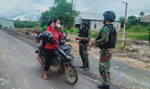 4 orang personel Pos Sungai Bening dipimpin Serda Oktovianus melakukan sweeping dengan memeriksa setiap kendaraan yang lewat dengan memeriksa pengemudi, penumpang dan barang bawaan. Personel pos juga memberikan masker kepada masyarakat yang tidak menggunakan masker saat melintas dengan memberikan penekanan bahwa penyebaran Covid-19 masih ada dan sedang meningkat, serta disiplin protkes terang Dansatgas.