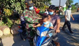 Kompas Nasional.com. Sambas -Kalbar. Anggota Koramil 1208 -08/Paloh bersama Polsek Paloh dan Tim Gugus Tugas Desa Matang Danau membagikan masker kepada warga, Minggu (13/06/21).