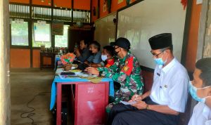 Sambas Kalbar ,Kompasnasional.com. Satgas Pamtas RI- Malaysia Yonif Mekanis 643/Wns menghadiri sosialisasi pelaksanaan kegiatan Vaksinasi terhadap anak usia 6-11 tahun oleh Puskesmas Paloh bertempat di SDN 20 Sungai Tengah Dusun Sungai Tengah, Desa Sebubus, Kec. Paloh, Kab. Sambas. Kamis (24/02/2022).