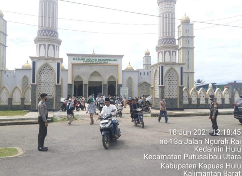 KAPUAS HULU KALBAR,KOMPAS Nasional- Anggota Sabhara Polres Kapuas Hulu Unit Turjawali Laksanakan pengamanan dan pengaturan lalu lintas saat sholat jumat di Masjid Agung Darunnajah Putussibau Kecamatan Putussibau Utara, Jumat 18 Juni 2021.