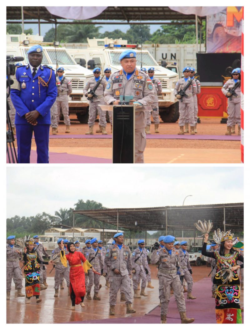 Afrika Tengah – FPU 3 MINUSCA melaksanakan Upacara Medal Parade di Lapangan Apel Garuda Camp, tampak tamu dari perwakilan PBB dan Perwakilan Negara yang tegabung dalam misi minusca hadir didalam Garuda Camp, Bangui, Republik Afrika tengah. Rabu (10/08/22).
