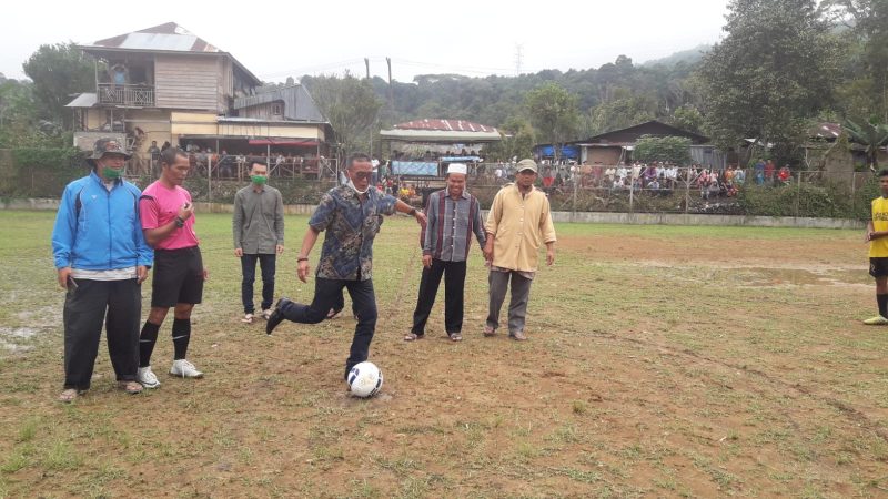 Usai pembukaan, Kabag Humas dan Protokol Isnut Siregar mewakili Bupati Tapsel, melakukan tendangan perdana. (Ikhfan)
