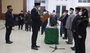 Halsel – Kompasnasional.com | Bupati Kabupaten Halmahera Selatan (Halsel) Usman Sidik melantik dan mengambil sumpah jabatan empat pejabat pimpinan tinggi pertama dilingkup pemda Halsel, Selasa (10/8/2021) malam di ruangan aula buapti.