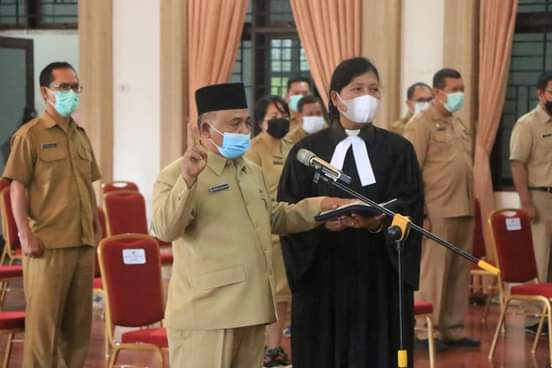 Kompas Nasional l SIMALUNGUN-Bupati Simalungun Radiapoh Hasiholan Sinaga SH melantik Sudiahman Saragih SH sebagai penjabat Sekretaris Daerah Kabupaten Simalungun, bertempat di balei Harungguan Kantor Bupati Simalungun Pamatang Raya,  Sumut,  Selasa 6/7/2021.
