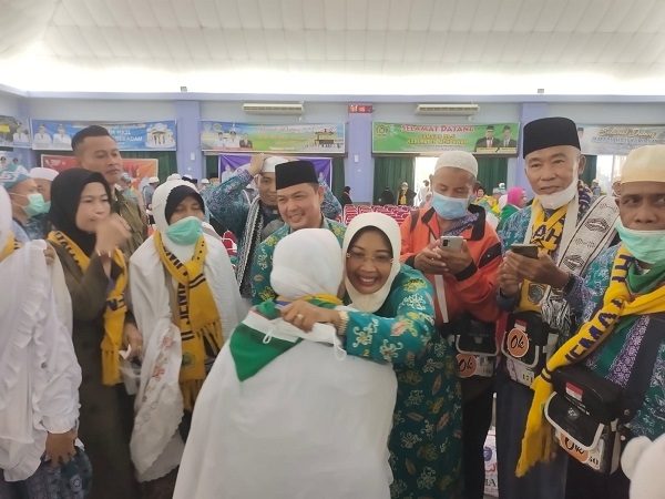 Tampak raut wajah ceria dan bahagia dari para Jemaah, yang disambut langsung oleh Bupati Mempawah, Erlina.