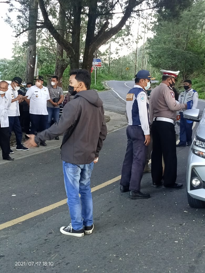 Bupati bersama Wakil Bupati Samosir meninjau kesiapan personil dan sarana prasarana pos penyekatan akses pintu masuk ke Samosir dalam rangka pelaksanaan PPKM Mikro Kabupaten Samosir, untuk membatasi dan memperketat pelaku perjalanan dari luar Samosir sekaligus menekan angka penyebaran Covid-19.