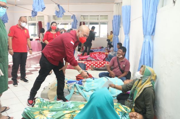 Selanjutnya, Bupati Nikson Nababan bersama rombongan juga menyapa para peserta yang telah selesai dioperasi dan dalam masa pemulihan serta menyerahkan bantuan sebagai motivasi.