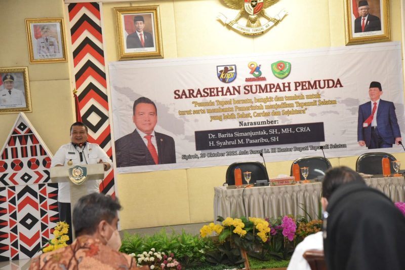 TAPSEL(kompas nasional)-Bupati Tapanuli Selatan (Tapsel) H Dolly Pasaribu, SPt, MM, Jumat (29/10), membuka acara Sarasehan bertajuk, “Pemuda Tapsel Bersatu, Bangkit dan Tumbuh untuk Turut serta Membantu Pemerintah Menjadikan Tapanuli Selatan yang Sehat, Cerdas, dan Sejahtera”. Acara yang digelar di Aula Sarasi II, Lantai III, Kantor Bupati Tapsel itu diselenggarakan dalam rangka memperingati HUT Sumpah Pemuda yang ke-93.