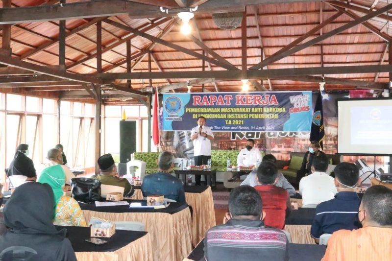 Bupati menceritakan pengalaman temannya yang kehidupannya bahkan rumah tangganya yang hancur. Untuk itu ia kembali mengajak peserta rapat kerja menjadi motor untuk aktif sebagai duta anti Narkoba.