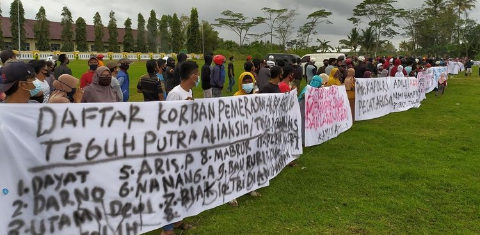“Korbannya banyak sekali, tidak terhitung. Per orang relatif, ada yang Rp 300 juta, Rp 500 juta, Rp 1,7 miliar, ada juga yang Rp 2,5 miliar,” kata Mulyono kepada wartawan seusai aksi di desa setempat, Senin.