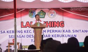 Sintang Kompasnasional.com. -Gubernur Kalimantan Barat yang diwakili oleh Kepala Badan Kesatuan Bangsa dan Politik Provinsi Kalimantan Barat Drs. Hermanus, M. Si melaunching Desa Kebong sebagai Desa Sadar Kerukunan di Kabupaten Sintang pada Rabu, 14 September 2022 di Halaman Kantor Camat Kelam Permai.
