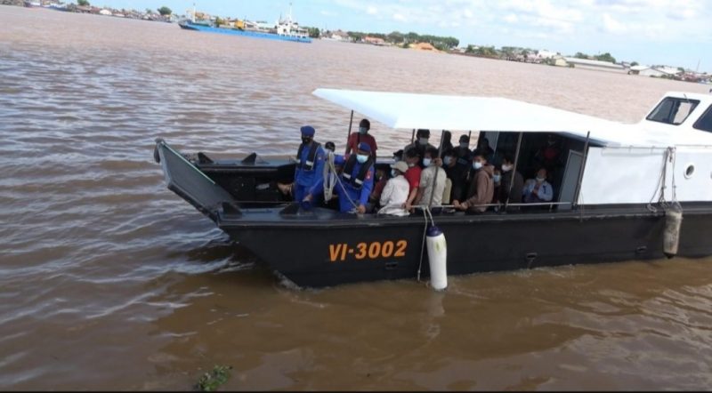 Selain mengadakan Vaksinasi secara gratis, Dit Polairud juga membantu masyarakat yang tinggal di pesisir sungai kapuas untuk datang mengikuti Vaksinasi tersebut.