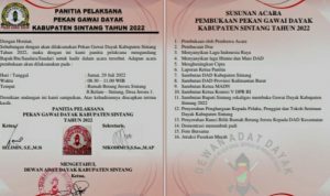 Undangan dan susunan acara pembukaan Pekan Gawai Dayak Ke- IX Kabupaten Sintang 2022 telah disiapkan pihak sekretariat. Penataan halaman dan lokasi di Rumah Betang Dayak Kabupaten Sintang sudah final dilaksanakan oleh pihak panitia. Harus diakui Gawai Dayak Kabupaten Sintang tahun 2022 ini sangat dirindukan generasi Dayak Sintang. Acara Gawai Dayak ke IX Kabupaten Sintang tahun 2022 ini dipusatkan di Rumah Betang Dayak Sintang, yang akan dibuka secara seremonial pada hari kamis 29/7/2022, jam 08.30 wib. Setelah Acara Pembukaan, akan dilanjutkan dengan Pawai Budaya sebagai wujud kegembiraan warga Dayak Sintang untuk memeriahkan Gawai Dayak.