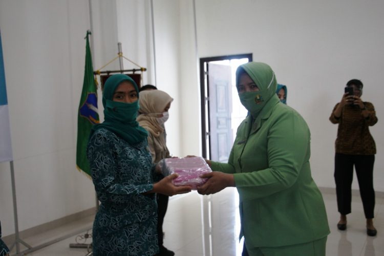 Ketua Tim Penggerak (TP) PKK Kota Pematangsiantar Ny Syahputri Hefriansyah br Hutabarat menerima 5 ribu pieces masker dari Ketua TP PKK Provinsi Sumatera Utara (Sumut) Ny Nawal Edy Rahmayadi.