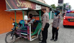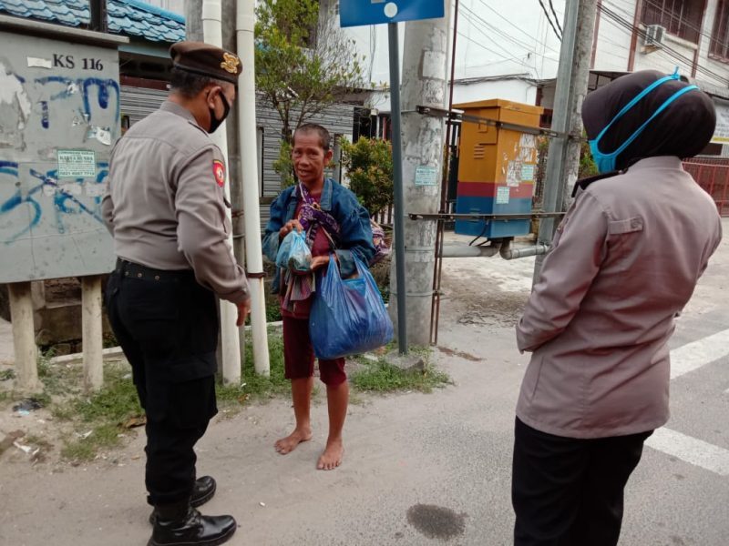 Personil Sat Shabara Polres Asahan didampingi Kanit Dalmas sat Sabhara dalam rangka Ops Aman Nusa II dan Hari Bhayangkara ke-74 ini, untuk mendukung persiapan menuju New Normal membagikan nasi bungkus kepada masyarakat yang melintas seputaran jalan inti kota kisaran untuk meringankan beban ditengah pandemi Covid 19 di wilkum Polres Asahan.