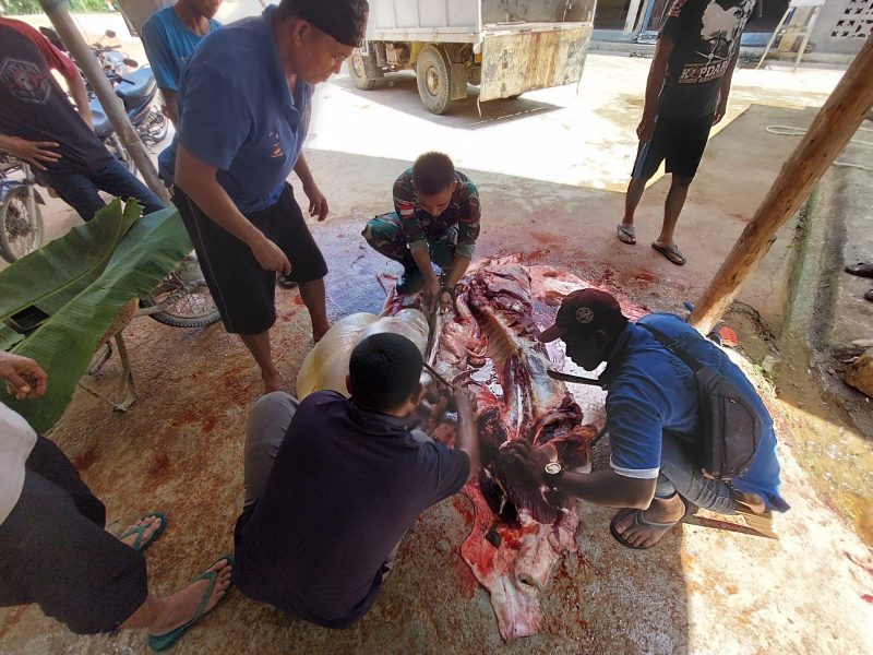 Bengkayang, Kalbar,KOMPAS NASIONAL.Com – Di hari Kedua Idhul Adha Pos Kout Satgas Pamtas Yonif 645/Gty Bantu warga Pemotongan dan penyembelihan Hewan Kurban 2 ekor Sapi dan 2 ekor Kambing, Dipimpin Pabintal Satgas Letda Inf Andi Muh Pagelipu beserta 4 orang anggota Pos Kout bertempat di Masjid Shirotul Jannah Dsn. Risau, Desa Jagoi Babang, Kec. Jagoi Babang. Kab. Bengkayang. Senin, 11/07/2022.