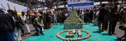 Kompasnasional | Kelompok pemberontak Yaman, Houthi, memamerkan uang, makanan, dan sumbangan lainnya dalam perayaan 2.000 hari melawan koalisi pimpinan Arab Saudi.