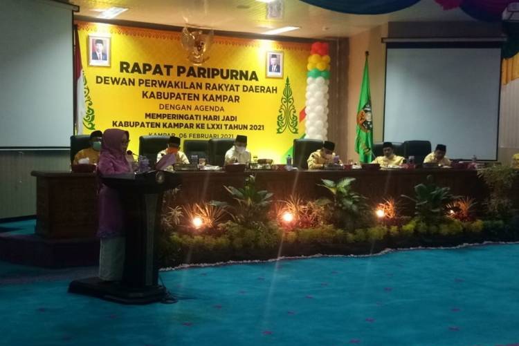Selanjutnya, Ketua DPRD Kampar Muhammad Faisal ST menyampaikan sidang paripurna istimewa tahun ini berlangsung secara terbatas dan dilakukan secara virtual dengan menerapkan protokol kesehatan,