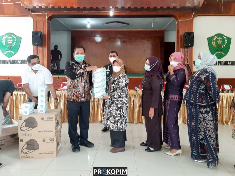 Walikota Padangsidimpuan Irsan Efendi Nasution SH membagikan masker untuk para guru dan siswa sekolah menjelang pembelajaran tatap muka, Jumat (03/09).