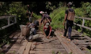 Sintang. Kompasnasional.com -Tak Kunjung dapat sentuhan pembangunan dari pemerintah Daerah maupun provinsi masyarakat Kayan Hulu – Serawai terpaksa melaksanakan perbaikan ruas jalan Provinsi secara Swadaya dengan cara bergotong royong membuat jembatan darurat dan miting kayu di ruas jalan provinsi Kayan Hulu – Serawai, pada senin, (13 -12 – 2021).
