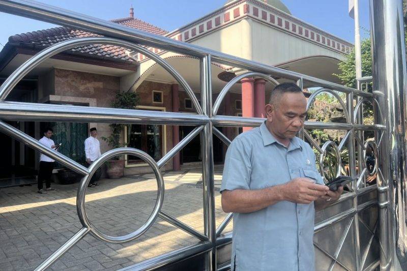 Pantauan wartawan di lokasi, dua orang yang diduga anggota keluarga mengenakan baju koko, berdiri di teras rumah.