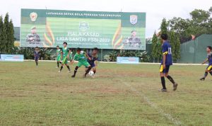 Kubu Raya, Kompasnasional.com Minggu (21/8/22) – Kesebelasan Ponpes Darul Ma’arif Sintang sukses mengalahkan Ponpes Miftahul Ulum Kubu Raya dengan skor 2-1 pada laga perempat final grup A Piala Kasad Liga Santri PSSI 2022 di Lapangan Sepak Bola Perkasa Tanjungpura, Makodam XII/Tpr. Dengan ini Ponpes Darul Ma’arif Sintang melaju ke babak semifinal.