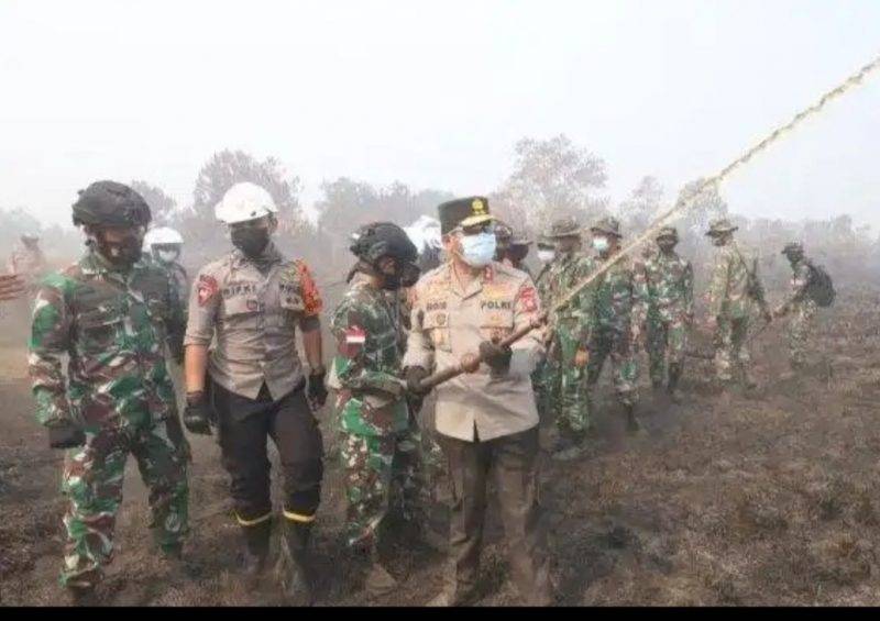 Pontianak Kalbar | Kompas Nasional– Kapolda Kalbar Irjen Pol Sigid Tri Hardjanto bersama Pangdam XII/Tanjungpura Mayjen TNI Muhammad Nur Rahmad meninjau langsung titik kebakaran hutan dan lahan (Karhutla) yang berada di wilayah Kabupaten Kubu Raya. Minggu (28/2/2021).