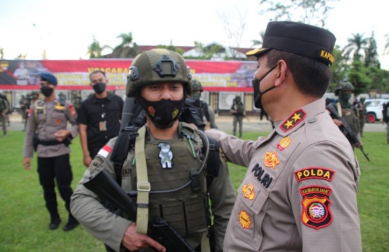 Apel penyambutan personel Satbrimob Polda Kalbar yang kembali dari melaksanakan tugas operasi Pamrahwan ini dipimpin langsung oleh Kapolda Kalbar Irjen Pol Drs. Suryanbodo Asmoro dan dihadiri oleh Wakapolda Kalbar beserta Pju Polda Kalbar di lapangan Jananuraga Polda Kalbar, Selasa (25/01/2022).