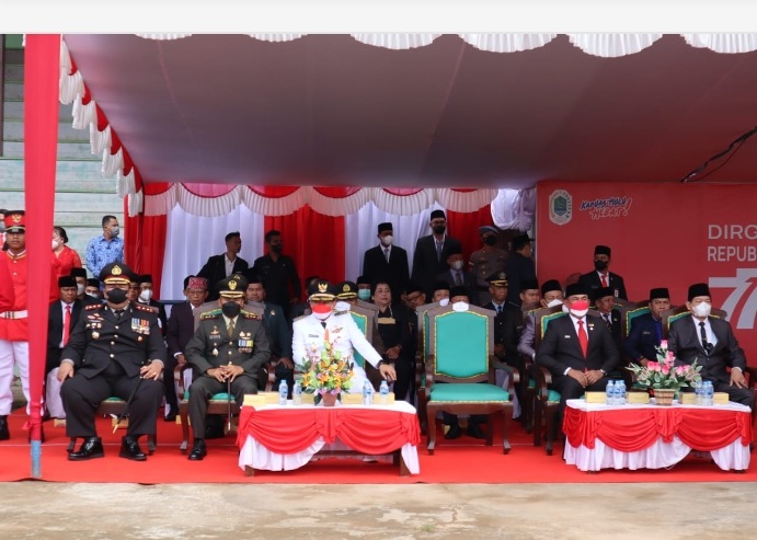Kegiatan upacara bendera detik-detik Proklamasi Kemerdekaan Republik Indonesia dihadiri oleh Forkopimda Kabupaten Kapuas Hulu serta undangan lainnya.
