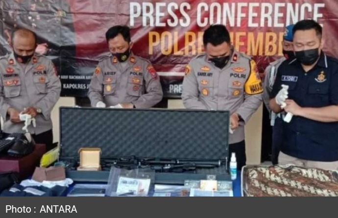 “Polisi menyita sejumlah barang bukti di antaranya 7 lembar slip setoran transfer dan fotokopi mobile banking, 4 unit telepon genggam, 1 senapan angin yang dibeli secara daring, 2 lembar lencana, dan tanda pengenal Dewan Ketahanan Nasional (Wantanas) untuk menipu korban,” katanya.