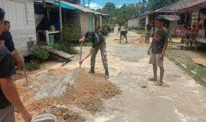Kompasnasional.com.Sambas, Kamis (1/4/21) – Kompak, personel Satgas Pamtas Yonif 642/Kapuas, Pos Sei Bening bersama masyarakat melaksanakan karya bhakti perbaikan jalan di Dusun Air Bening, Desa Sungai Bening, Kecamatan Sajingan Besar, Kabupaten Sambas, Kalimantan Barat.