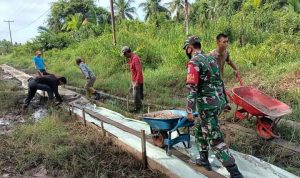 Kompas Nasional.com.Kayong Utara, Minggu (24/1/21) – Babinsa Pejala’an, Koramil 1203-11/Simpang Hilir Pratu Tri Hendri melaksanakan kerja bhakti bersama masyarakat secara bergotong royong melakukan pembuatan jalan rabat beton, di Desa Penjala’an, Kecamatan Simpang Hilir, Kabupaten Kayong Utara Kalbar .