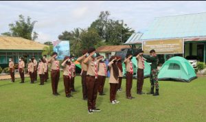Melatih Disiplin Sikap, Anggota Kodim Berikan Latihan PBB Bagi Peserta Pramuka SWK