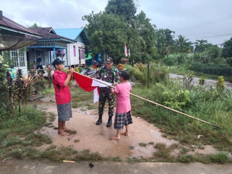 Bengkayang, Kalbar,KOMPAS NASIONAL.Com– Dalam Menyambut HUT Kemerdekaan Republik Indonesia ke-77 dan sebagai wujud kecintaan masyarakat terhadap Negara Kesatuan Republik Indonesia di perbatasan, Pos Sei Saparan Satgas Pamtas Yonif 645/Gty Dipimpin Serda Viriski (Wadanpos Sei Saparan) beserta 1 orang anggota a.n. Prada Herman membagikan bendera merah-putih dan Sekaligus Pemasangan Secara Serentak di Depan Rumah-Rumah Warga Dusun Saparan dalam rangka menyambut HUT Kemerdekaan RI bertempat di Dusun Saparan Ds. Kumba Kec. Jagoi babang Kab. Bengkayang. Jumat, 05 Agustus 2022