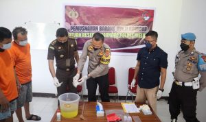 “Pemusnahannya sendiri dilakukan dengan melarutkan barang bukti sabu tadi ke dalam cairan yang kami siapkan dan selanjutnya cairan beserta sabu yang telah dilarutkan dibuang ke septic tank. Tujuannya agar benar-benar tidak ada lagi sisa dari barang bukti ini yang dapat digunakan lagi,” jelasnya.
