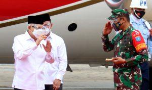 Kompasnasional.com.Palangka Raya, Selasa (30/3/21) – Panglima Kodam XII/Tanjungpura, Mayjen TNI Muhammad Nur Rahmad bersama Forkopimda Provinsi Kalimantan Tengah menyambut kedatangan Wakil Presiden Republik Indonesia, Prof. Dr. K. H. Ma’ruf Amin serta rombongan di Bandara Tjilik Riwut, Kota Palangka Raya.