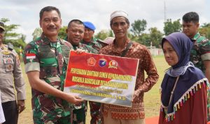 Usai menutup kegiatan, Pangdam XII/Tpr bersama pejabat lainnya menyerahkan bantuan dari Wakasad kepada Pengurus Mushola Darusalam Danau Ganting dan Pemilik Rumah Tidak Layak Huni serta sembako kepada masyarakat.