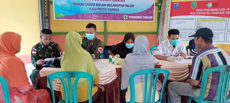 Sambas, Kalbar – KOMPAS NASIONAL.Com– Satuan Tugas Pengamanan Perbatasan RI-Malaysia Yonif 645/GTY dalam hal ini Pos Temajuk membantu tenaga kesehatan Puskesmas Temajuk menyelenggarakan Program Pos Pembinaan Terpadu (Posbindu) untuk warga masyarakat perbatasan, bertempat di Dusun Camar Bulan, Desa Temajuk, Kecamatan Paloh, Kabupaten Sambas.