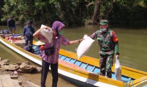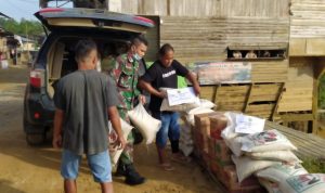 Kompasnasional.com.Bengkayang, Kalbar. Kamis (21/1/21) – Peduli dengan masyarakat di desa binaan yang mengalami musibah, Babinsa Cempaka Putih Koramil 1202-07/Ledo Praka Tamim mengawal dan membantu menyalurkan bantuan untuk korban banjir di Desa Cempaka Putih dan Desa Suka Maju, Suti Semarang, Bengkayang.