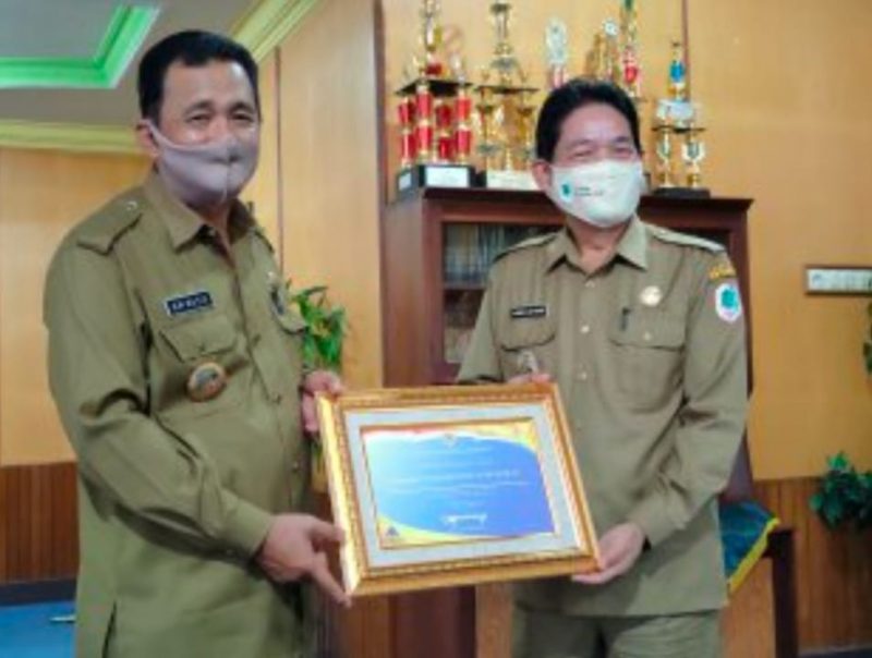 Penghargaan diserahkan Kakanwil Ditjen Perbendaharaan Kalimantan Barat, Edih Mulyadi kepada Bupati Kapuas Hulu, AM Nasir di Sekretariat Daerah Kapuas Hulu, Senin (9/11/2020).