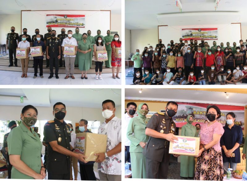 Saat di Panti Asuhan Kasih Bapa, Pangdam XII/Tpr, Mayjen TNI Sulaiman Agusto didampingi Ketua Persit Kartika Chandra Kirana Daerah XII/Tpr, Ny. Helly Sulaiman Agusto menyerahkan secara simbolis bantuan paket sembako kepada Ketua Yayasan Kasih Bapa, Bapak Herini, Kepala Panti Asuhan Kasih Bapa, Ibu Fera Era Teta Saragih dan Kepala Panti Jompo Kasih Bapa, Ibu Rosnawati serta perwakilan warga Panti.