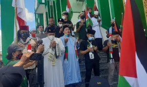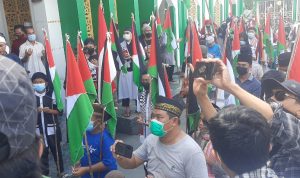 Kompas Nasional.com.Singkawang Kalbar ,Persatuan Orang Melayu (POM) Kota Singkawang menggelar aksi membela Palestina di depan Masjid Raya Kota Singkawang pada siang Jumat(21/5/21).Anggota POM mulai berdatangan selesai sholat jum’at pada pukul 12.30