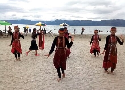“Ber wisata Kepantai Pantai Batuhoda di Desa Cinta Dame Kabupaten Samosir, Tak hanya memanjakan pemandangan anda ke danau toba, tapi juga hadir tarian tradisional batak yang dibawakan para personel Sanggar tari Martabe, Sanggar tari Gok asi dengan konsep mengenang masa lalu para pengunjung.”