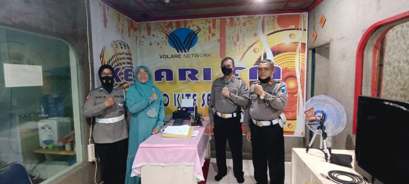 Selain sosialisasi secara langsung melalui tatap muka dengan masyarakat, sosialisasi juga dilakukan melalui siaran radio. Adapun sosialisasi dan penyuluhan yang disampaikan adalah imbauan tentang disiplin berlalu lintas,