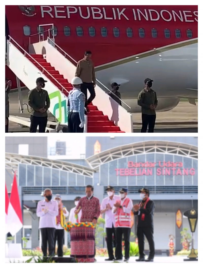 Sintang Kalbar,KOMPAS NASIONAL – Gubernur Kalimantan Barat, H. Sutarmidji, S.H., M.Hum mendampingi Presiden Republik Indonesia Ir. H. Joko Widodo dalam acara peresmian Bandar Udara Tebelian Sintang yang ditandai dengan pemukulan kube dan penandatanganan prasasti, rabu (8/12/21).