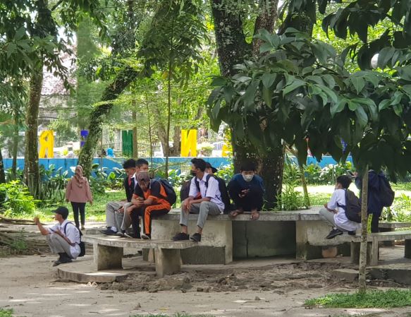 Pantauan awak media di lapangan, masih ada beberapa siswa melepas maskernya . Begitu pun saat jam sekolah maupun pulang sekolah masih ditemui siswa yang berkeliaran dan nonkrong di tempat umum secara berkelompok hingga tiga orang.