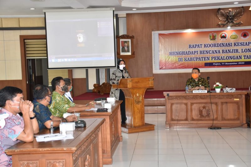 KAJEN- Setelah ditetapkan BMKG sebagai salah satu wilayah di Provinsi Jawa Tengah yang masuk wilayah rawan terjadinya bencana alam di musim penghujan, Pemerintah Kabupaten Pekalongan lakukan Rapat Koordinasi Kesiapsiagaan Menghadapi Bencana Alam yang dilaksankan di Aula lantai 1 Setda Kabupaten Pekalongan pada pagi ini, Rabu (11/11/2020).