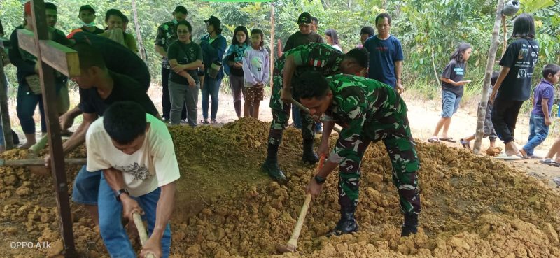 Bengkayang, Kalbar – Sebagai bentuk kepedulian dan rasa empati terhadap sesama, Satgas Pamtas Yonif 645/Gty membantu proses pemakaman Sdra. Junaidi yang meninggal karena sakit komplikasi, dipimpin langsung Pabintal Satgas Letda Inf Andi Muh Pagelipu beserta 3 orang anggota terjun langsung untuk membantu dalam prosesi pemakaman jenazah mulai dari proses ibadah pelepasan jenazah hingga ke tempat penguburan dengan membantu memikul Peti jenazah di Gang Pinang Merah Dsn. Jagoi Desa. Jagoi Babang, Kec. Jagoi Babang Kab. Bengkayang. Minggu, (31/07/2022)